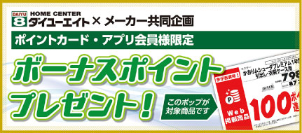 ダイユーエイトホームページにボーナスポイント専用ページがございますので、ぜひ、ボーナスポイント対象商品をチェックしてみてください。