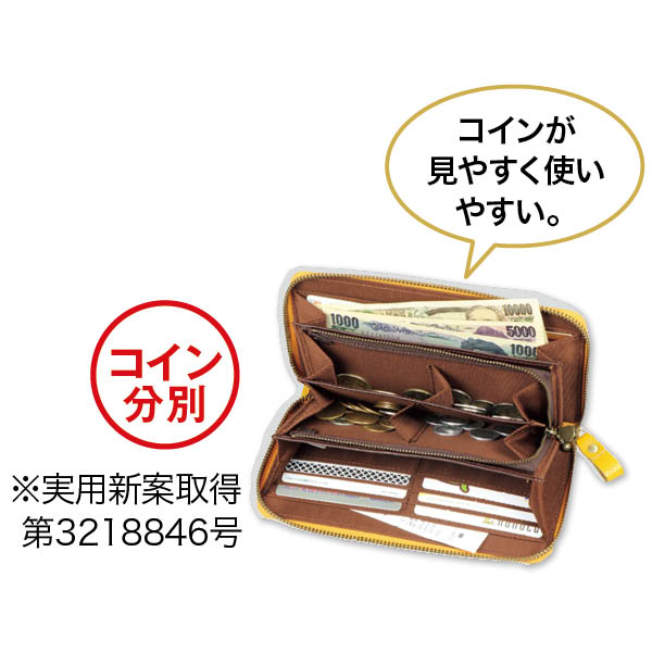 4つに分かれた小銭入れや12のカード入れなど、使い勝手にも工夫があり、ソフトで肌触りの良い牛革が使い込むほど手に馴染みます。