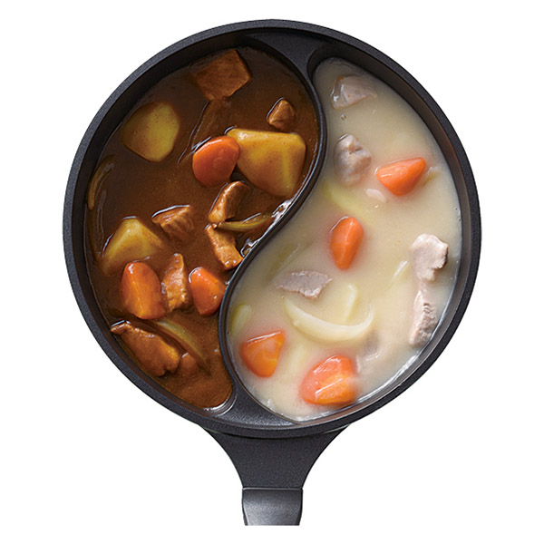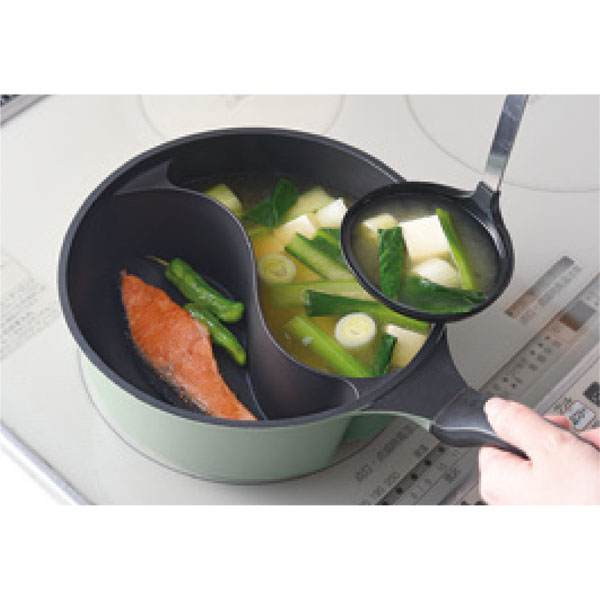 スープとおかず、朝食の準備がこれ1つで!曲線の仕切りでお玉も使いやすい。