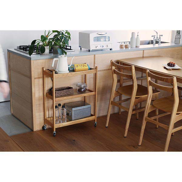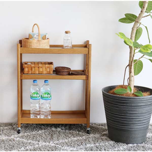 リセスタイル テーブルワゴン引出付ウッド3段