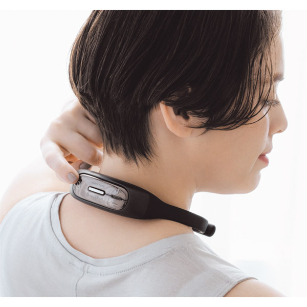 2つの通電パッドから首まわりの筋肉に低周波の電流が流れます。
