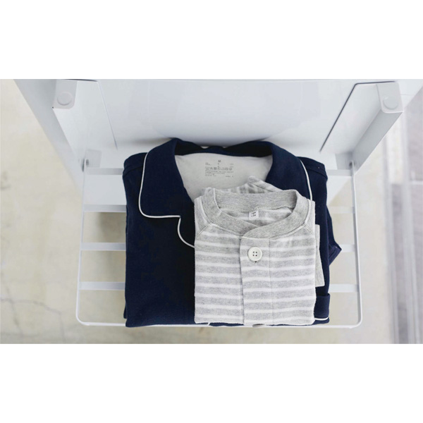 ①脱衣場が狭く困っていましたが、取り付けたままでも折りたためるので邪魔にならず、