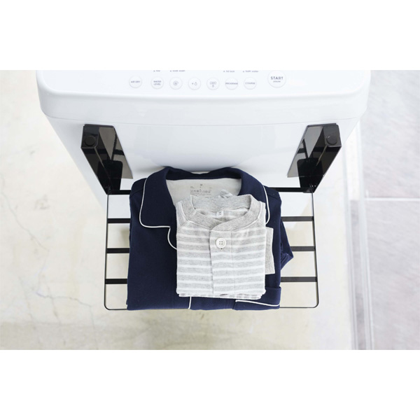 曲面にも貼り付けられるので、洗濯機の前面、側面、どちらにも貼り付けられます。