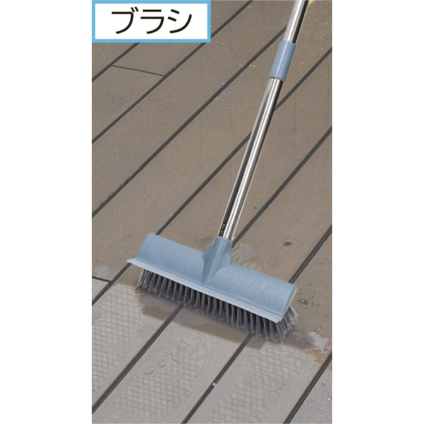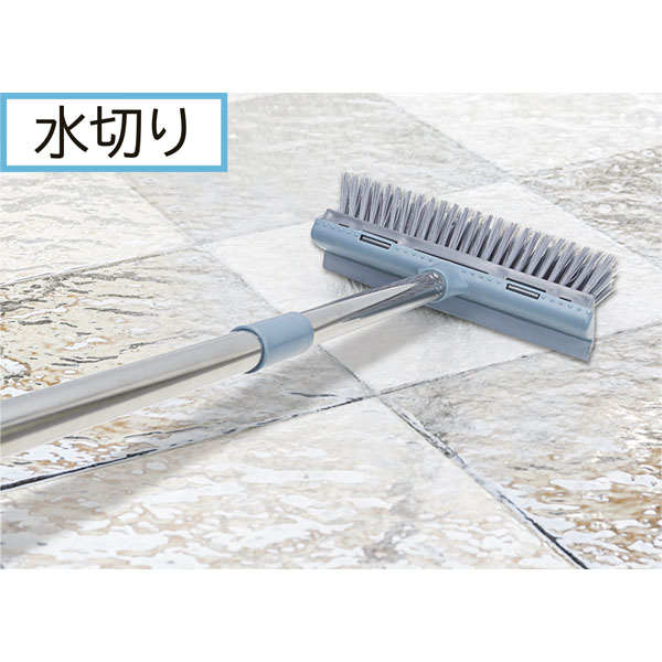 ブラシで床掃除。水切りができて早く乾く。床やベランダ、浴室、窓の水滴落としに最適!