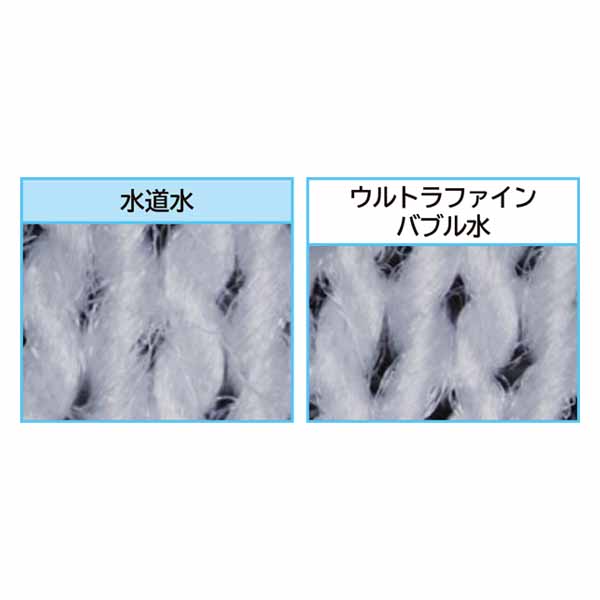 1マイクロメートル未満という、衣類の繊維よりも微細な泡の“ウルトラファインバブル”。繊維の奥深くまで洗浄成分を届けて汚れや菌を落とし、毛羽立ちや損耗も軽減します。