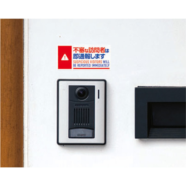 貼るだけ侵入抑止!手軽に防犯対策。警告文は、日本語・英語・中国語・ベトナム語・韓国語の5か国語で表記。在留外国人による犯罪の抑止に。